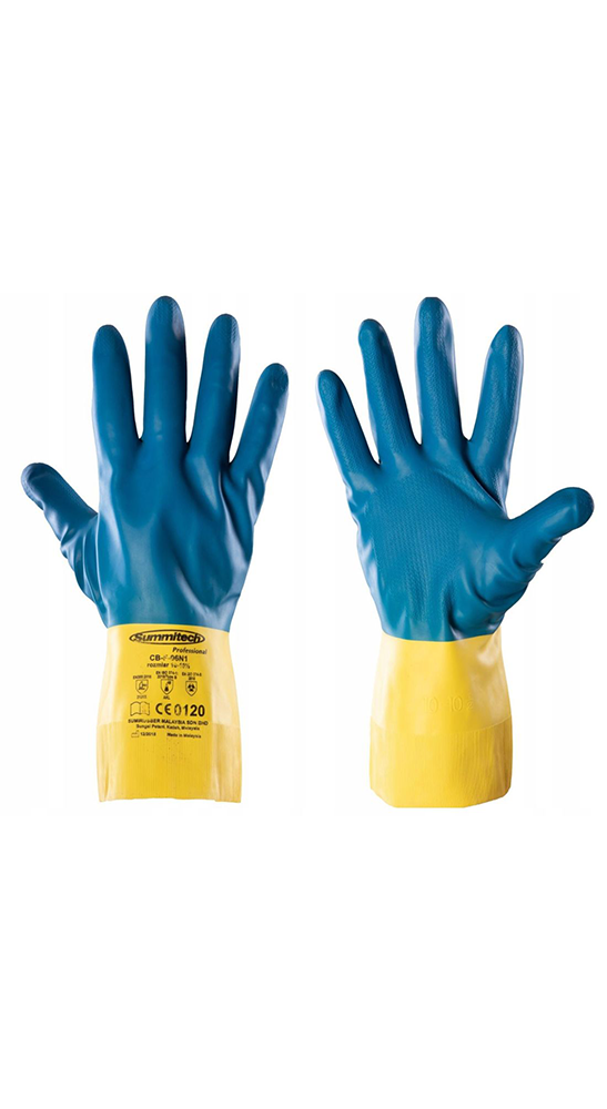 Berbagai produk safety terutama sarung tangan food-grade dan solusi kebersihan (Summitech & Saber).